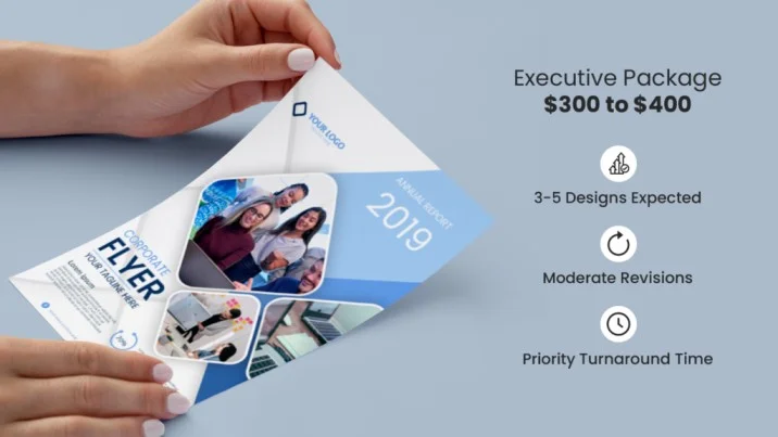 The Executive package caters to clients looking for more design options and flexibility regarding revisions and turnaround time.