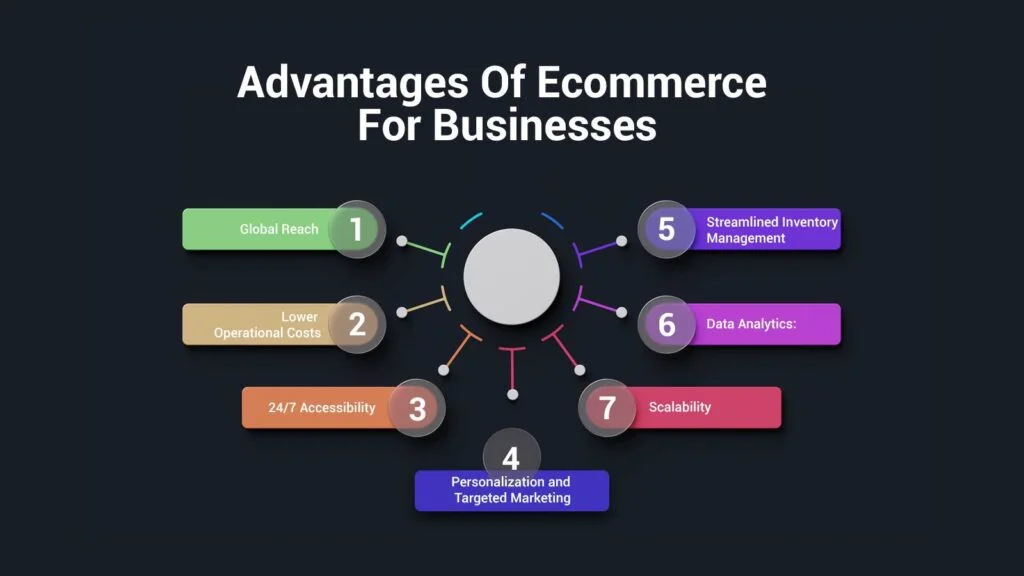 Ecommerce, or electronic commerce, offers numerous advantages for businesses of all sizes. In today’s digital age, it has become an essential component of many successful business models. Here are seven key advantages of ecommerce for businesses: